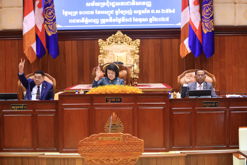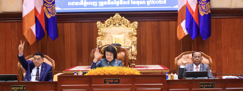 សម្តេចមហារដ្ឋសភាធិការធិបតី ឃួន សុដារី ប្រធានរដ្ឋសភានៃព្រះរាជាណាចក្រកម្ពុជា បានអញ្ជើញដឹកនាំ កិច្ចប្រជុំរដ្ឋសភាជាវិសាមញ្ញនីតិកាលទី៧ នៅព្រឹកថ្ងៃសុក្រទី១៧ ខែតុលាឆ្នាំ២០២៥ ដើម្បីពិភាក្សានិងអនុម័តសេចក្តីព្រាងច្បាប់ចំនួន៥មាន៖