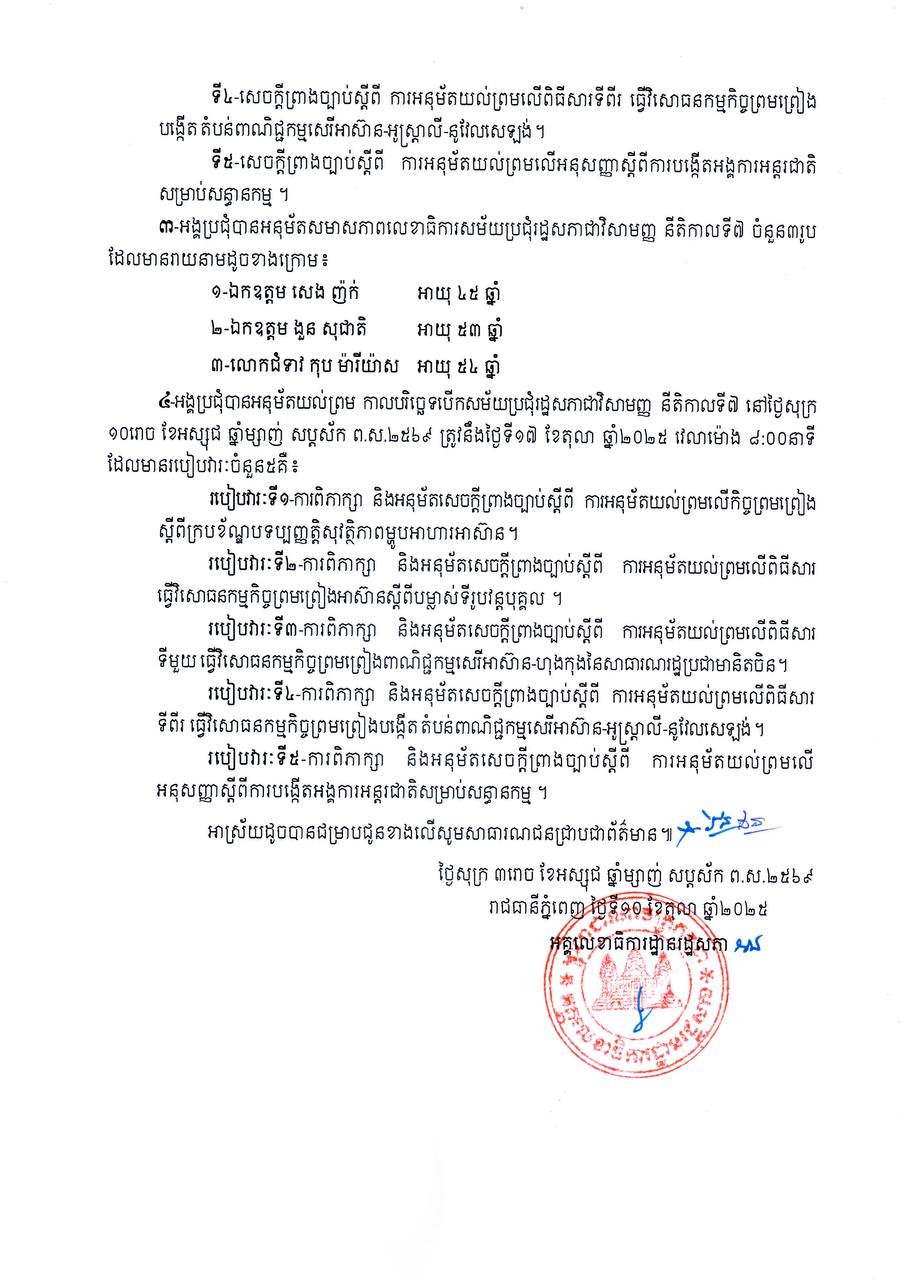 សេចក្តីជូនដំណឹង របស់ អគ្គលេខាធិការដ្ឋានរដ្ឋសភា__
