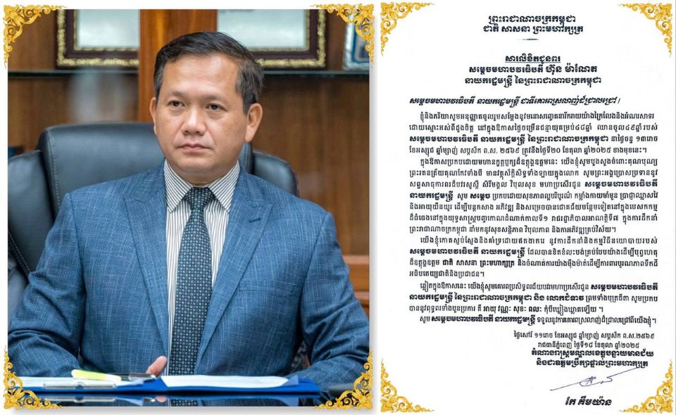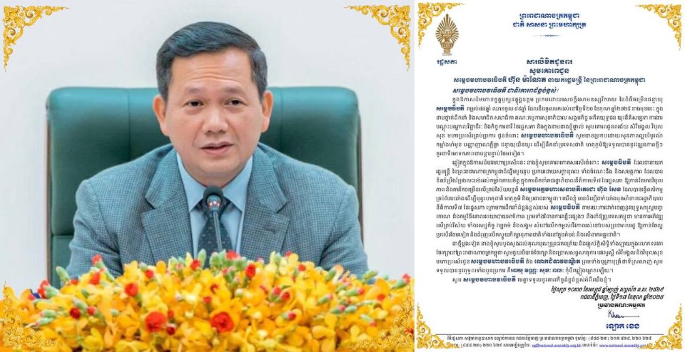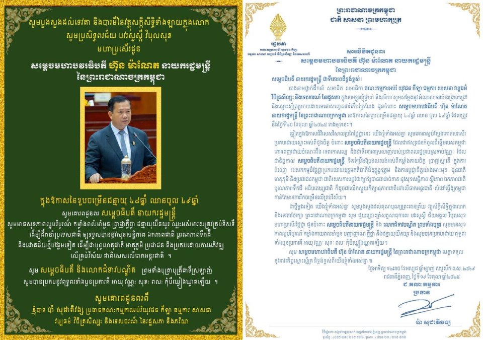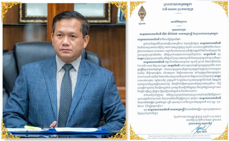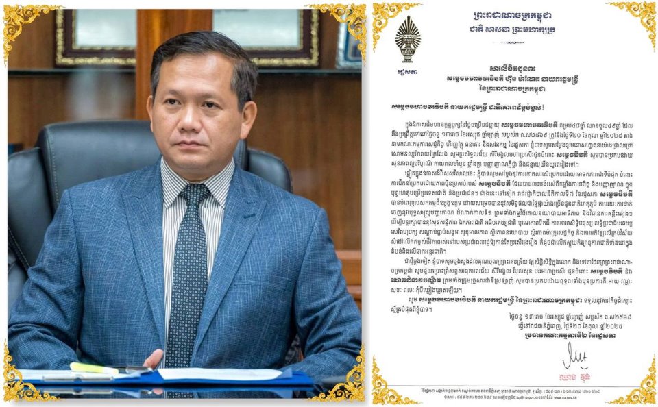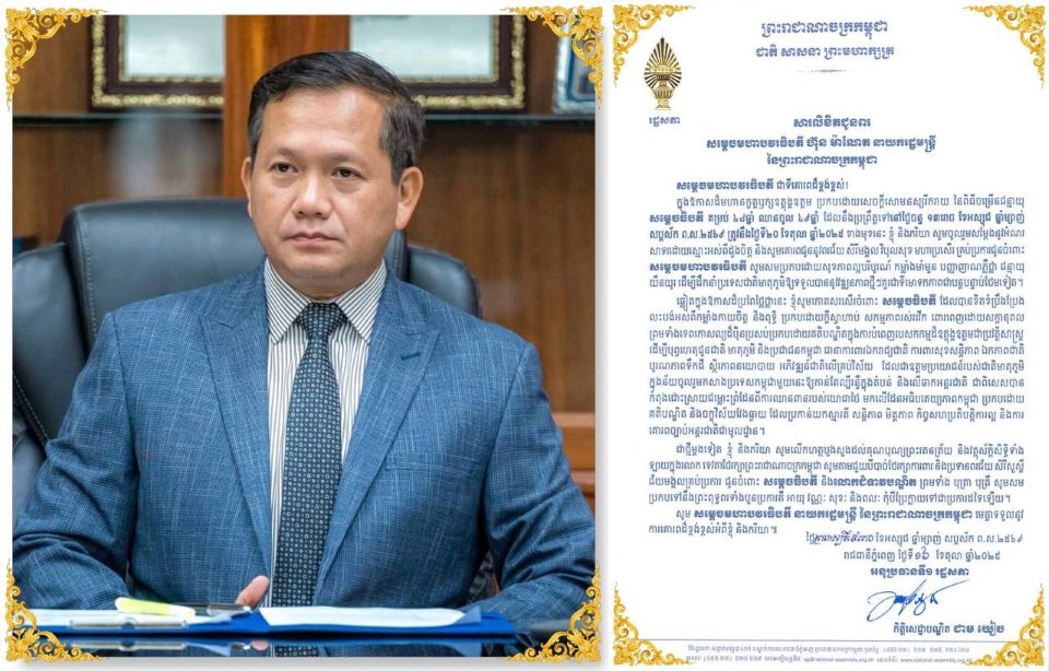 សម្តេចមហារដ្ឋសភាធិការធិបតី ឃួន សុដារី ប្រធានរដ្ឋសភា នៃព្រះរាជាណាចក្រកម្ពុជា ព្រមទាំងសមាជិក សមាជិការដ្ឋសភា ផ្ញើសារលិខិតជូនពរ សម្តេចមហាបវរធិបតី ហ៊ុន ម៉ាណែត នាយករដ្ឋមន្ត្រី នៃព្រះរាជាណាចក្រកម្ពុជា