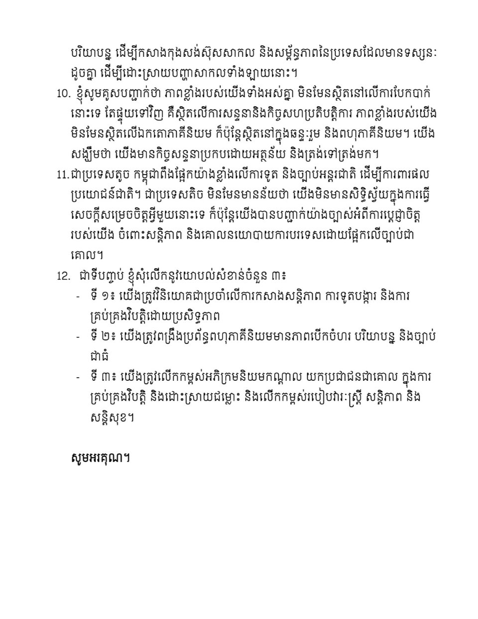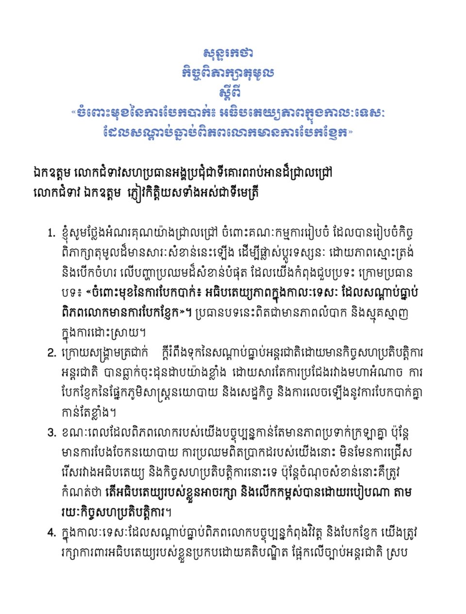 សុន្ទរកថាទាំងស្រុងរបស់ សម្តេចមហារដ្ឋសភាធិការធិបតី ឃួន សុដារី ប្រធានរដ្ឋសភា នៃព្រះរាជាណាចក្រកម្ពុជា ក្នុងកិច្ចប្រជុំតុមូល នៃវេទិកាសន្តិភាពប៉ារីសលើកទី៨