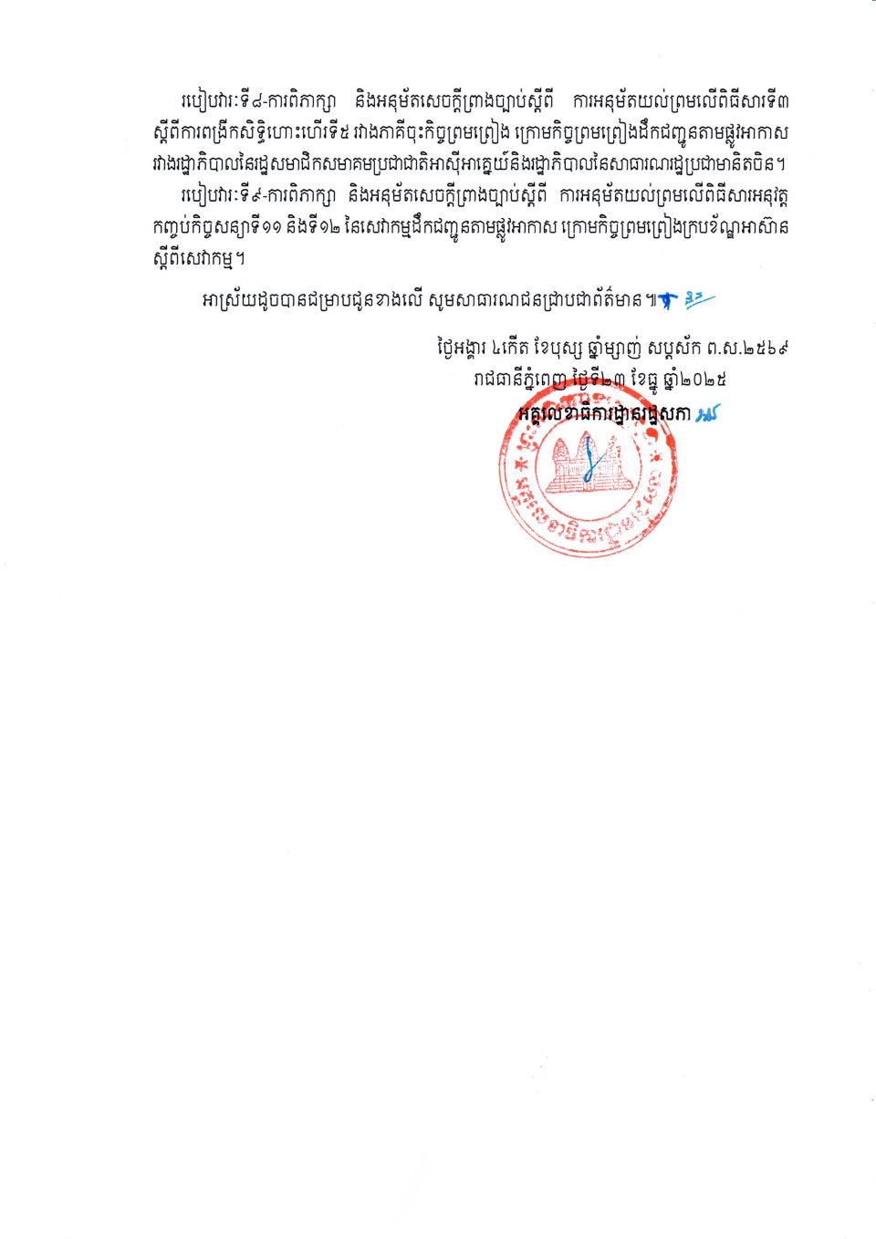 សេចក្តីជូនដំណឹង រដ្ឋសភា នៃព្រះរាជាណាចក្រកម្ពុជា នឹងបន្តសម័យប្រជុំរដ្ឋសភាលើកទី៥ នីតិកាលទី៧ នៅថ្ងៃព្រហស្បតិ៍ ទី២៥ ខែធ្នូ ឆ្នាំ២០២៥__