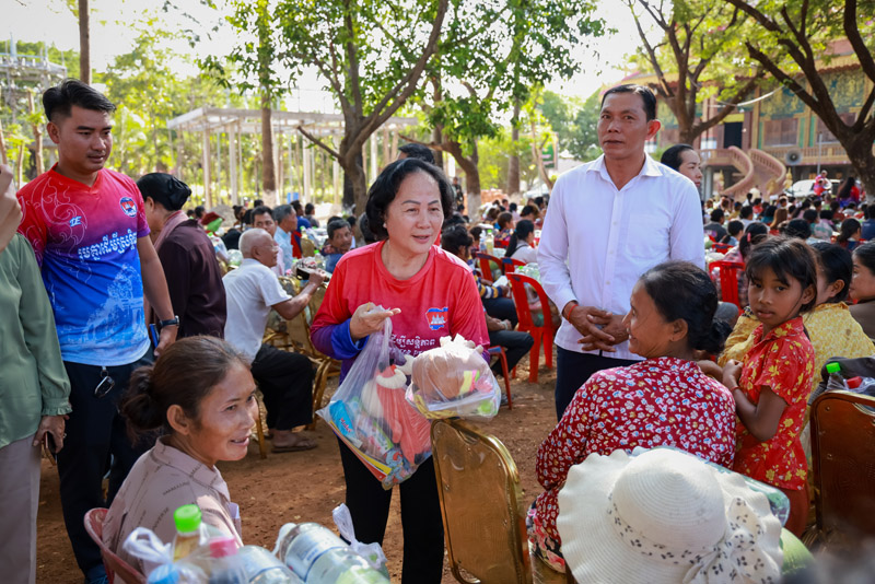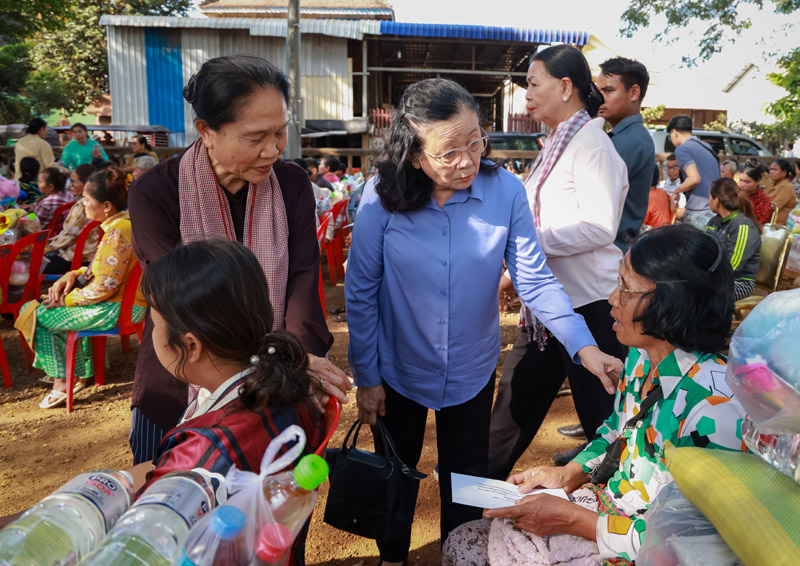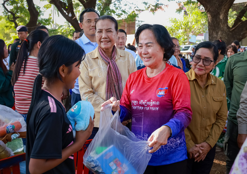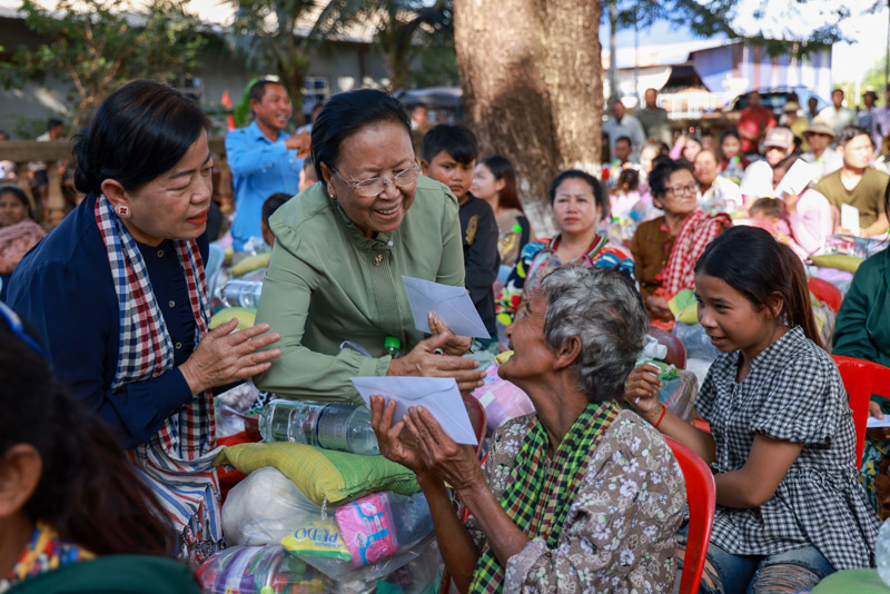 ក្រោយពីជួបសំណេះសំណាលរួចមកលោកជំទាវ ឡោក ខេង ព្រមលោកជំទាវជាសមាជិកសភាជាតិកម្ពុជា នៃអ្នកនយោបាយស្ត្រីបាននាំយកនូវអំណោយរបស់សម្តេចមហារដ្ឋសភាធិការធិបតី ឃួន សុដារី ចែកជូនជនភៀសសឹកចំនួន ៦១៨គ្រួសារ ដោយក្នុង១គ្រួសារទទួលបាន ឃីត១ កន្សែង១ សាប៊ូដុតខ្លួន ២ដុំ សំឡីអនាម័យ ២ដុំ សាប៊ូលាងចាន១ ថ្នាំដុសធ្មេញ១ ស្ករសរ ១កញ្ចប់ អំបិល ១កញ្ចប់ ឆៃប៉ូវ ១ថង់ សាច់ក្រក ត្រីខ និងមី ទឹកស៊ីអ៊ីវ ១ដប ទឹកត្រី ១ដប សៀង ១ដប អង្ករ ៥គីឡូក្រាម ព្រមទាំងថវិកា៥ម៉ឺនរៀល។ ដោយឡែក ឯកឧត្ត សេង ញ៉ក់ សមាជិកគណៈកម្មការទី៨ នៃរដ្ឋសភា បានចែកអំណោយជូនជនភៀសសឹកចំនួន ៦១៨គ្រួសាររួមមាន៖ នំសូកូឡា ១កញ្ចប់ ចាហួយ ១កែវ ស្ពៃកុងឆាយ ១កែវ និងមីសួរ កន្លះគីឡូក្រាម៕