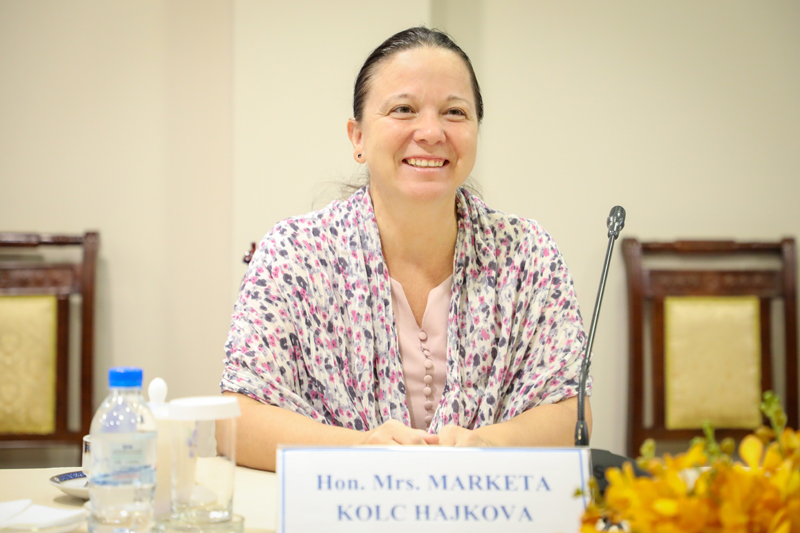 លោកជំទាវឯកអគ្គរដ្ឋទូត បានគូសបញ្ជាក់ថា នៅក្នុងអាណត្តិការទូតរបស់លោកជំទាវ នឹងខិតខំធ្វើយ៉ាងណាជំរុញទំនាក់ទំនងរវាងកម្ពុជា និងឆែកឱ្យមានភាពរីកចម្រើន និងល្អប្រសើរទំាងស្ថាប័ននីតិប្បញ្ញត្តិ និងនីតិប្រតិបត្តិ ដូចជាការផ្លាស់ប្តូរដំណើរទស្សនកិច្ចក្រុមមិត្តភាពសភាប្រទេសទំាងពីរ ការពង្រឹងទំនាក់ទំនងប្រជាជននិងប្រជាជន ជំរុញវិស័យពាណិជ្ជកម្ម ការវិនិយោគរវាងប្រទេសទំាងពីរឱ្យកាន់តែរីកចម្រើន ជាពិសេស លោកជំទាវនឹងប្រឹងប្រែងកៀរគរអ្នកវិនិយោគ និងអ្នកទេសចរពីសាធារណរដ្ឋឆែកឱ្យមកវិនិយោគនិងកម្សាន្តនៅកម្ពុជាឱ្យកាន់តែច្រើន។