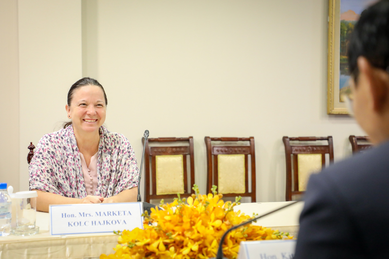 ឯកឧត្តមកិត្តិសេដ្ឋាបណ្ឌិត ចម ប្រសិទ្ធ បានសម្ដែងនូវការស្វាគមន៍ចំពោះលោកជំទាវឯកអគ្គរដ្ឋទូត និងបានចាត់ទុកវត្តមានរបស់ លោកជំទាវនៅកម្ពុជា ជាការបង្ហាញច្បាស់អំពីទំនាក់ទំនង មិត្តភាព សាមគ្គីភាព និងកិច្ចសហប្រតិបត្តិការល្អរវាង សាធារណរដ្ឋឆែក និងកម្ពុជា។