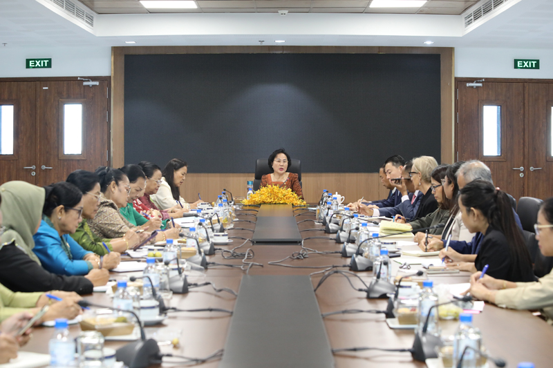 លោកជំទាវ ឡោក ខេង ប្រធានគណៈកម្មការសុខាភិបាល សង្គមកិច្ច អតីតយុទ្ធជន យុវនីតិសម្បទា ការងារ បណ្តុះបណ្តាលវិជ្ជាជីវៈ និងកិច្ចការនារី នៃរដ្ឋសភា (គណៈកម្មការទី៨) និងជាប្រធានក្រុមសភាជាតិកម្ពុជា នៃអ្នកនយោបាយសភាស្ត្រី នៅរសៀលថ្ងៃទី៥ ខែកុម្ភៈ ឆ្នាំ២០២៦ នេះ បានអញ្ជើញជួបពិភាក្សាការងារជាមួយតំណាងមូលនិធិសហប្រជាជាតិសម្រាប់ប្រជាជន (UNFPA) និងអង្គការសហប្រជាជាតិដើម្បីសមភាពយេនឌ័រ និងបង្កើនអំណាចដល់ស្ត្រី (UN Women) នៅវិមានរដ្ឋសភា ដើម្បីពិភាក្សាលើកិច្ចសហប្រតិបត្តិការរៀបចំកម្មវិធី «សភាធ្វើត្រាប់» ដែលនឹងប្រព្រឹត្តទៅនាពេលឆាប់ៗខាងមុខនេះ។