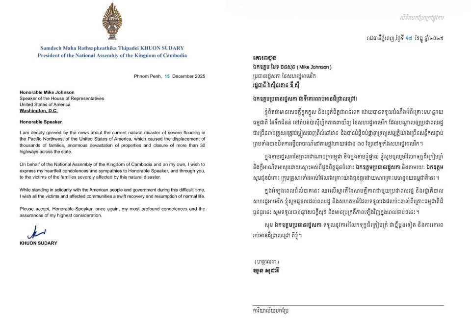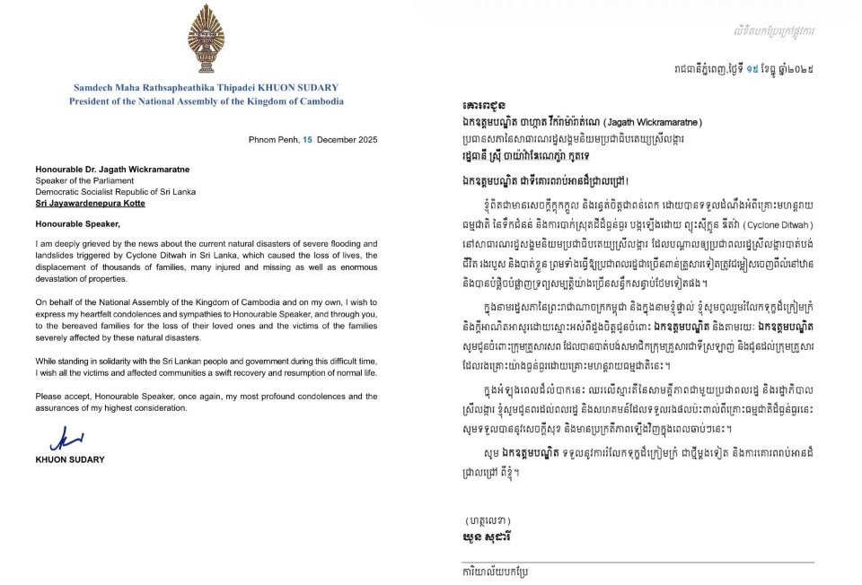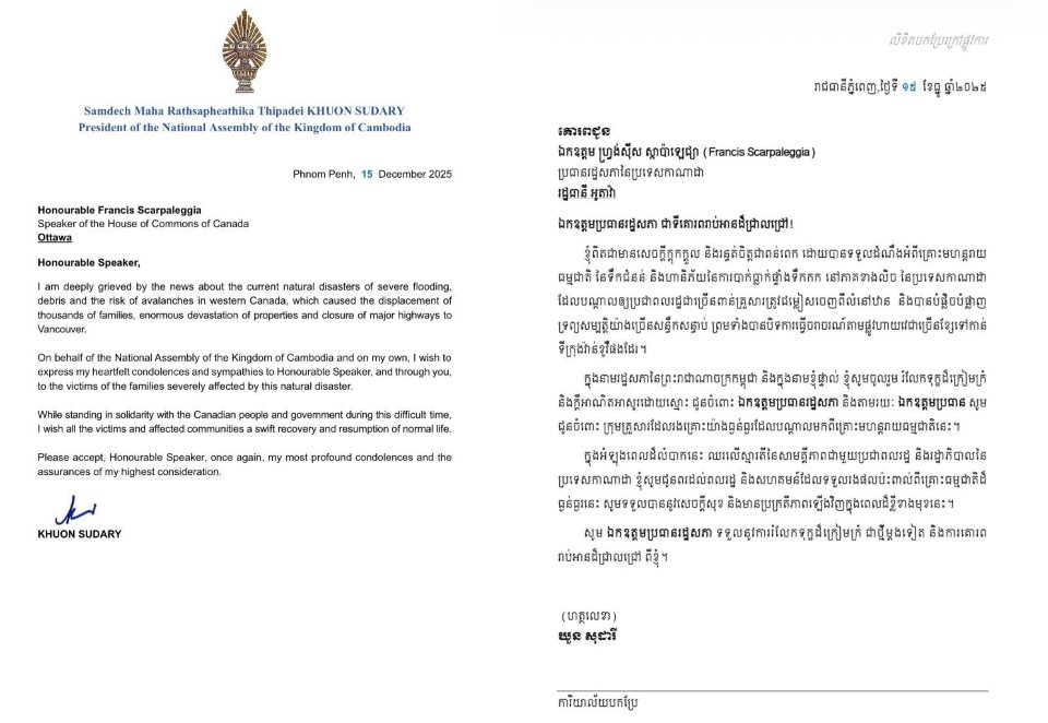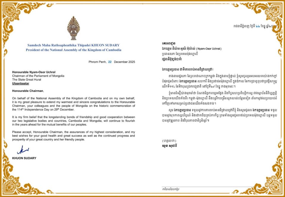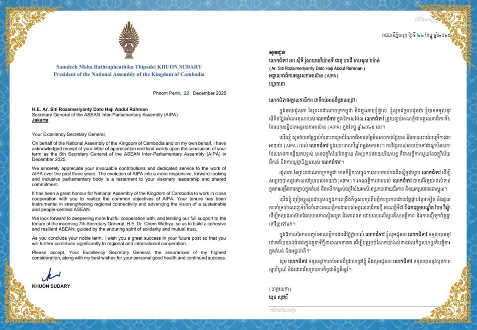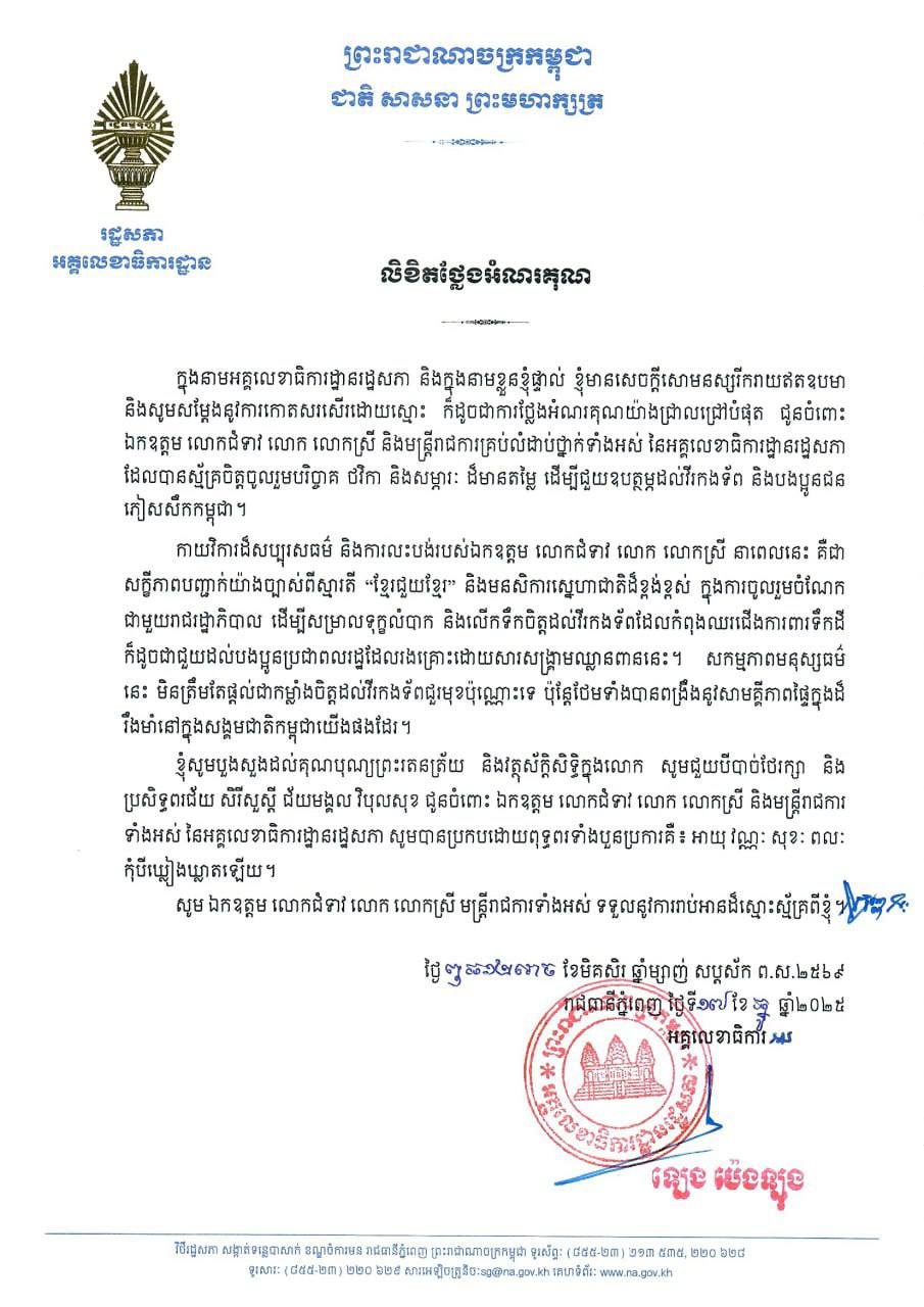 លិខិតថ្លែងអំណរគុណ របស់ អគ្គលេខាធិការដ្ឋានរដ្ឋសភា