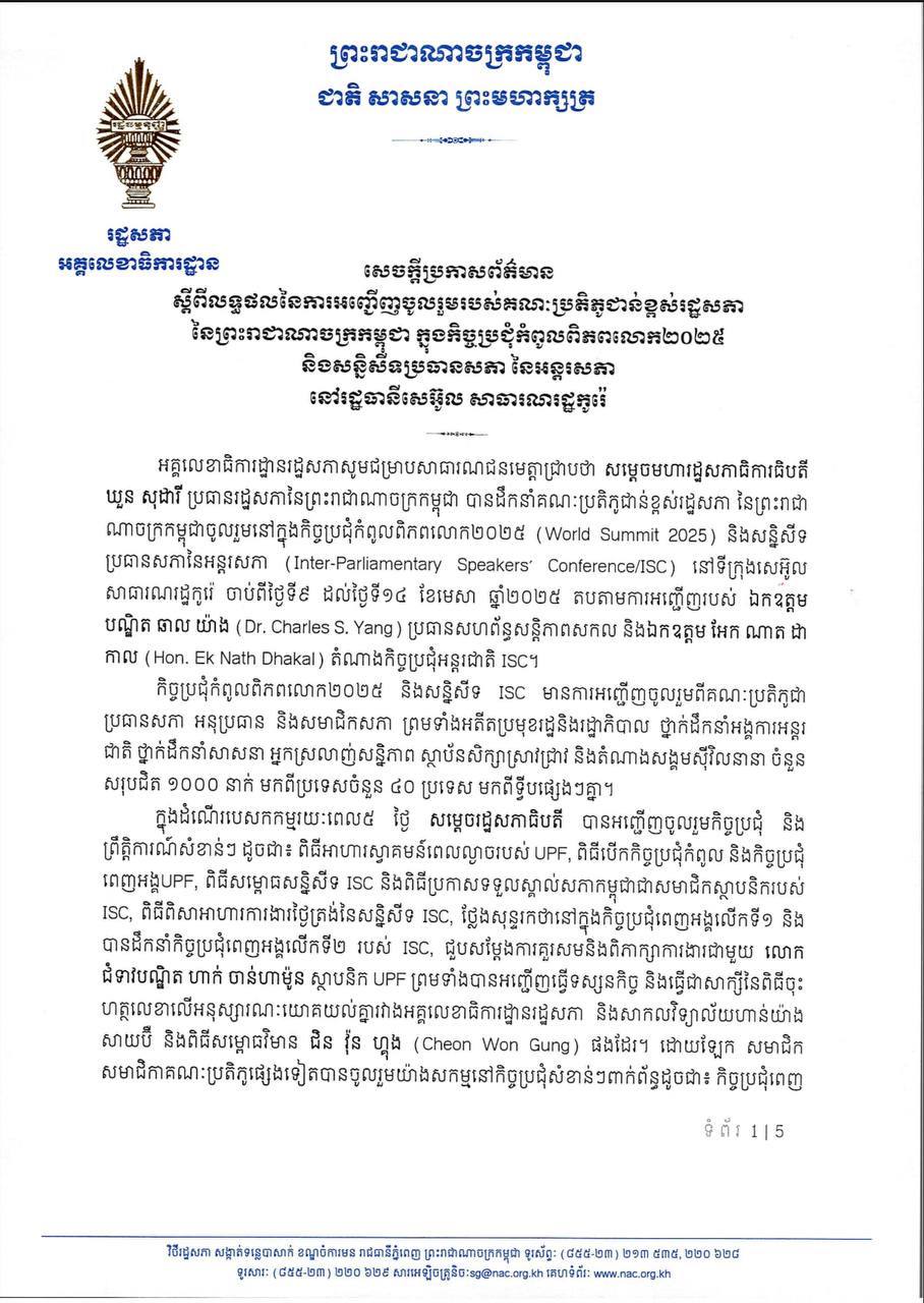 សេចក្តីប្រកាសព័ត៌មាន ស្តីពី លទ្ធផលសម័យប្រជុំរដ្ឋសភាលើកទី៥ នីតិកាលទី៧ ថ្ងៃសុក្រ ទី២៨ ខែវិច្ឆិកា ឆ្នាំ២០២៥