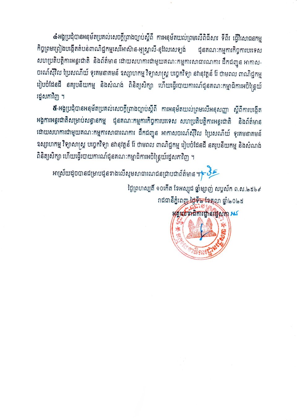 សេចក្តីប្រកាសព័ត៌មាន ស្តីពីលទ្ធផលនៃកិច្ចប្រជុំគណៈកម្មាធិការអចិន្ត្រៃយ៍រដ្ឋសភា នារសៀលថ្ងៃព្រហស្បតិ៍ ទី២ ខែតុលា ឆ្នាំ២០២៥