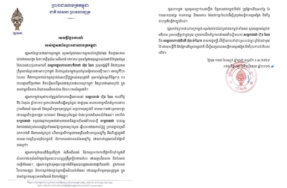 សេចក្តីថ្លែងការណ៍របស់រដ្ឋសភានៃព្រះរាជាណាចក្រកម្ពុជា__