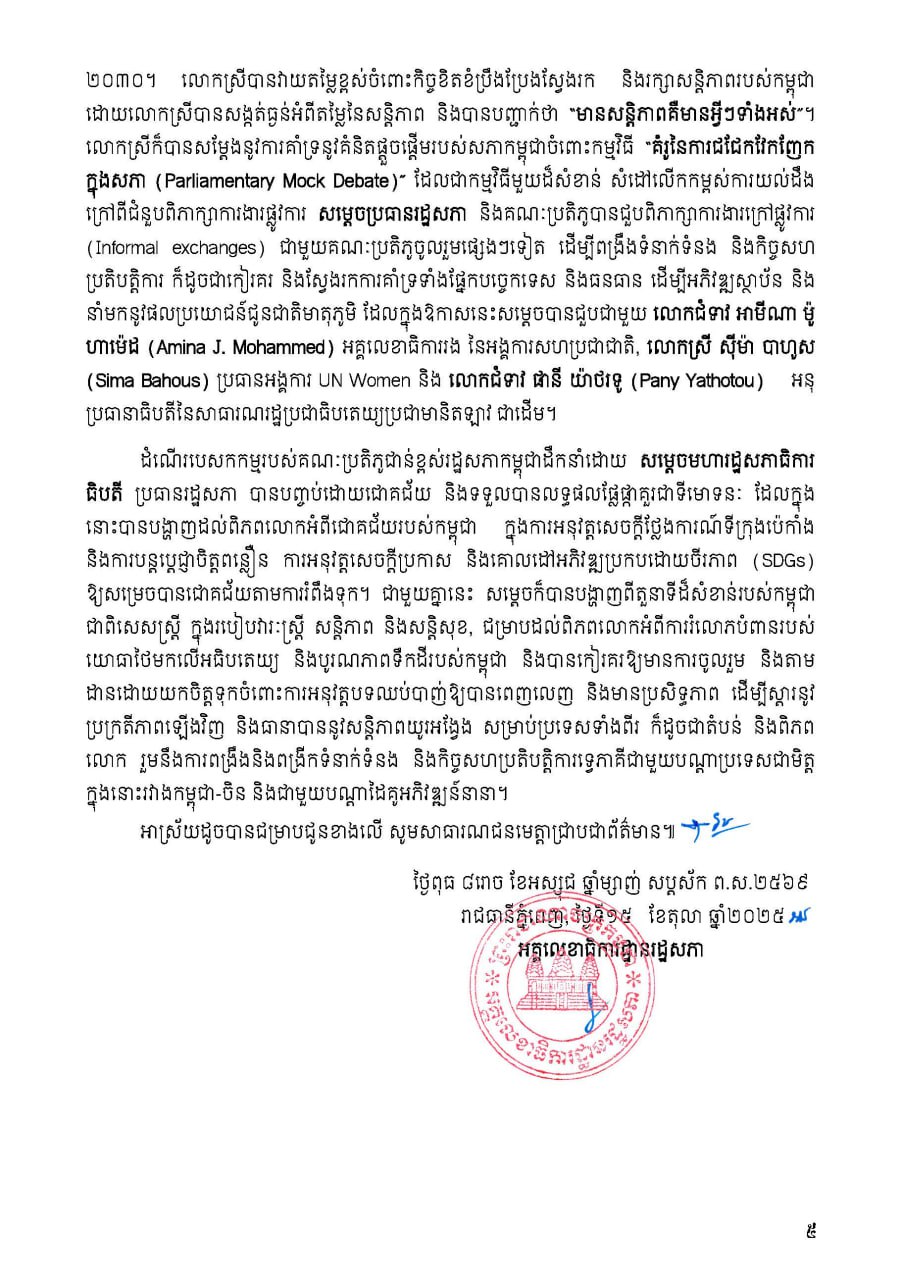 សេចក្តីប្រកាសព័ត៌មាន ស្តីពីលទ្ធផលនៃការចូលរួមរបស់គណៈប្រតិភូជាន់ខ្ពស់រដ្ឋសភាកម្ពុជា ក្នុងកិច្ចប្រជុំថ្នាក់ដឹកនាំពិភពលោក ស្តីពីស្រ្តី នៅរដ្ឋធានីប៉េកាំង នៃសាធារណរដ្ឋប្រជាមានិតចិន