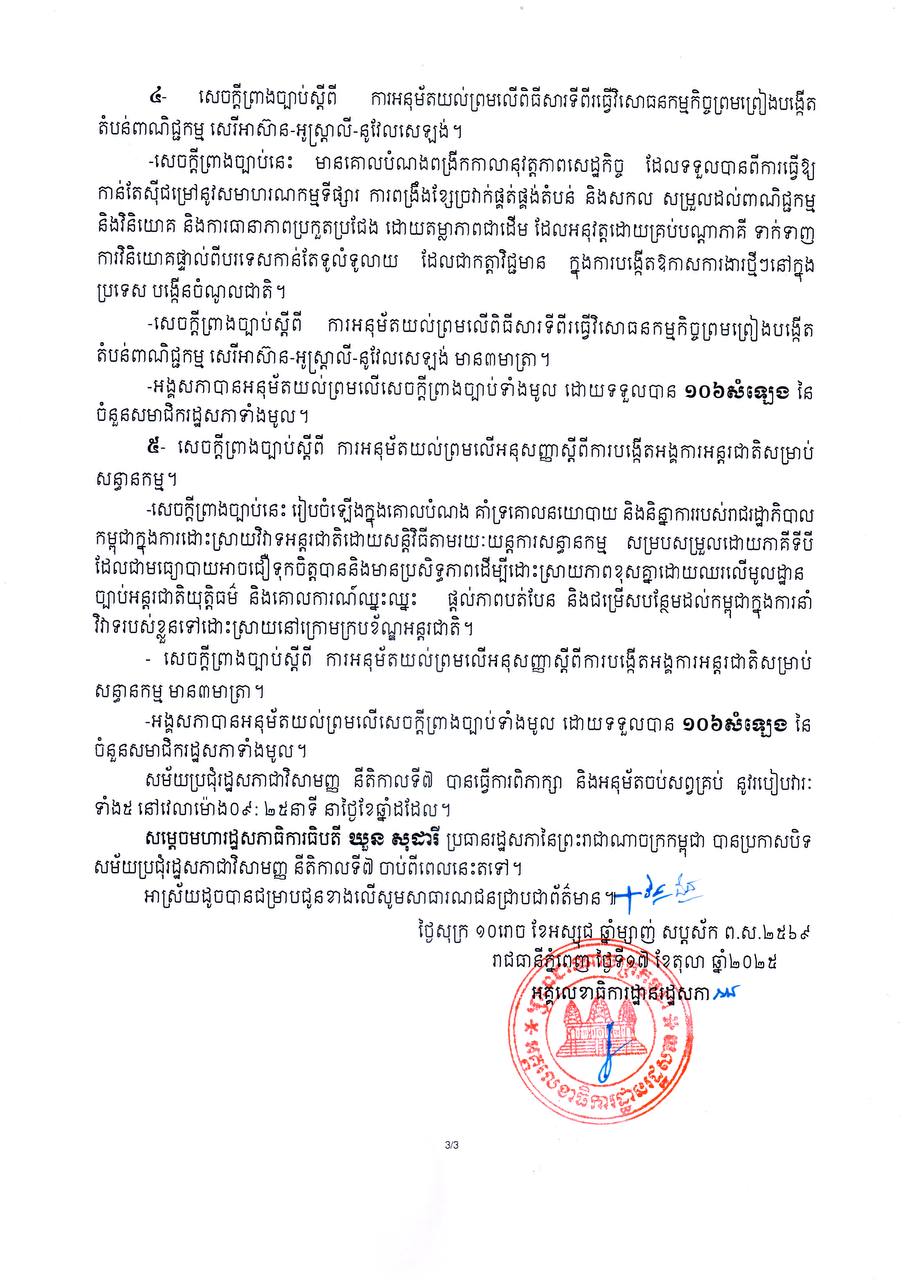 សេចក្ដីប្រកាសព័ត៌មាន ស្ដីពីលទ្ធផលសម័យប្រជុំរដ្ឋសភាជាវិសាមញ្ញ នីតិកាលទី៧ ថ្ងៃសុក្រ ទី១៧ ខែតុលា ឆ្នាំ២០២៥