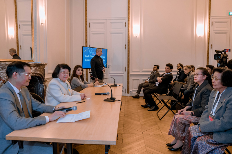 នៅក្នុងកិច្ចពិភាក្សាតុមូលមួយ នៅរសៀលថ្ងៃទី៣០ ខែតុលា ឆ្នាំ២០២៥ ក្រោមប្រធាន«ការបែកបាក់ និងការប្រឈមមុខដាក់គ្នា៖ ការផ្លាស់ប្តូរភូមិសាស្រ្តនយោបាយនៅអាស៊ី» ដែលមានការចូលរួមពីសមាជិកស្ថាប័ននីតិប្បញ្ញត្តិ នីតិប្រតិបត្តិ អ្នកការទូត និងអ្នកស្រាវជ្រាវ។ ឆ្លៀតក្នុងឱកាសនោះសម្តេចប្រធានរដ្ឋសភា ក៏បានសម្តែងនូវការអរគុណយ៉ាងជ្រាលជ្រៅចំពោះកិច្ចខិតខំសម្របសម្រួល និងការធ្វើជាសាក្សីរបស់ឯកឧត្តម ដូណាល់ ត្រាំ ប្រធានាធិបតីសហរដ្ឋអាមេរិក និងឯកឧត្តម អាន់វ៉ា អ៊ីប្រាហ៊ីម នាយករដ្ឋមន្ត្រីម៉ាឡេស៊ី ក្នុងពិធីចុះហត្ថលេខាលើកិច្ចព្រមព្រៀងសន្តិភាពកម្ពុជា-ថៃ កាលពីថ្ងៃទី២៦ ខែតុលា កន្លងទៅ។
