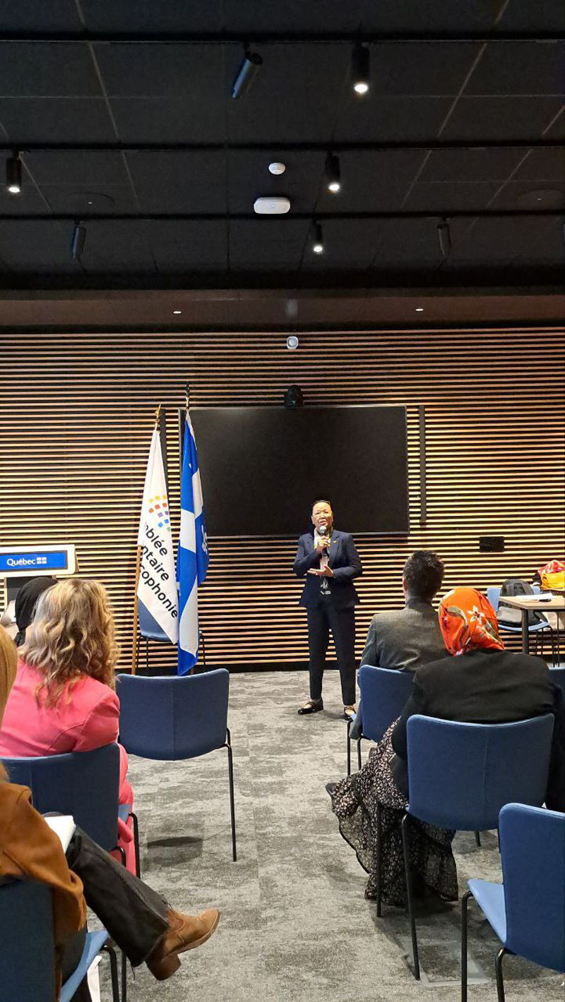 ១. ស្តាប់បទបង្ហាញស្តីពី «ភាពវៃឆ្លាតខាងអារម្មណ៍» ដោយសាស្ត្រាចារ្យ Nathalie Rinfret មកពីសាលាជាតិរដ្ឋបាលសាធារណៈ កេប៊ិក និងការផ្លាស់ប្តូរបទពិសោធន៍គ្នាទៅវិញទៅមក។
