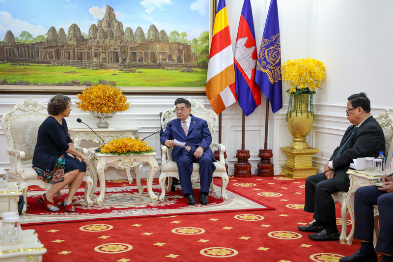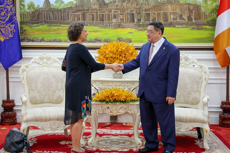 ឯកឧត្តមកិត្តិសេដ្ឋាបណ្ឌិត ជាម យៀប អនុប្រធានទី១ រដ្ឋសភា តំណាងដ៏ខ្ពង់ខ្ពស់របស់សម្តេចមហារដ្ឋសភាធិការធិបតី ឃួន សុដារី ប្រធានរដ្ឋសភានៃព្រះរាជាណាចក្រកម្ពុជា នាព្រឹកថ្ងៃទី២៥ ខែវិច្ឆិកា ឆ្នាំ២០២៥ បានអនុញ្ញាតឱ្យលោកជំទាវ អាឡូណា ហ្វីសស៊ឺ-ខេម (Alona Fisher-Kamm) ឯកអគ្គរដ្ឋទូត នៃរដ្ឋអ៊ីស្រាអែលចូលជួបសំដែងការគួរសមនិងពិភាក្សាការងារ នៅវិមានរដ្ឋសភា។