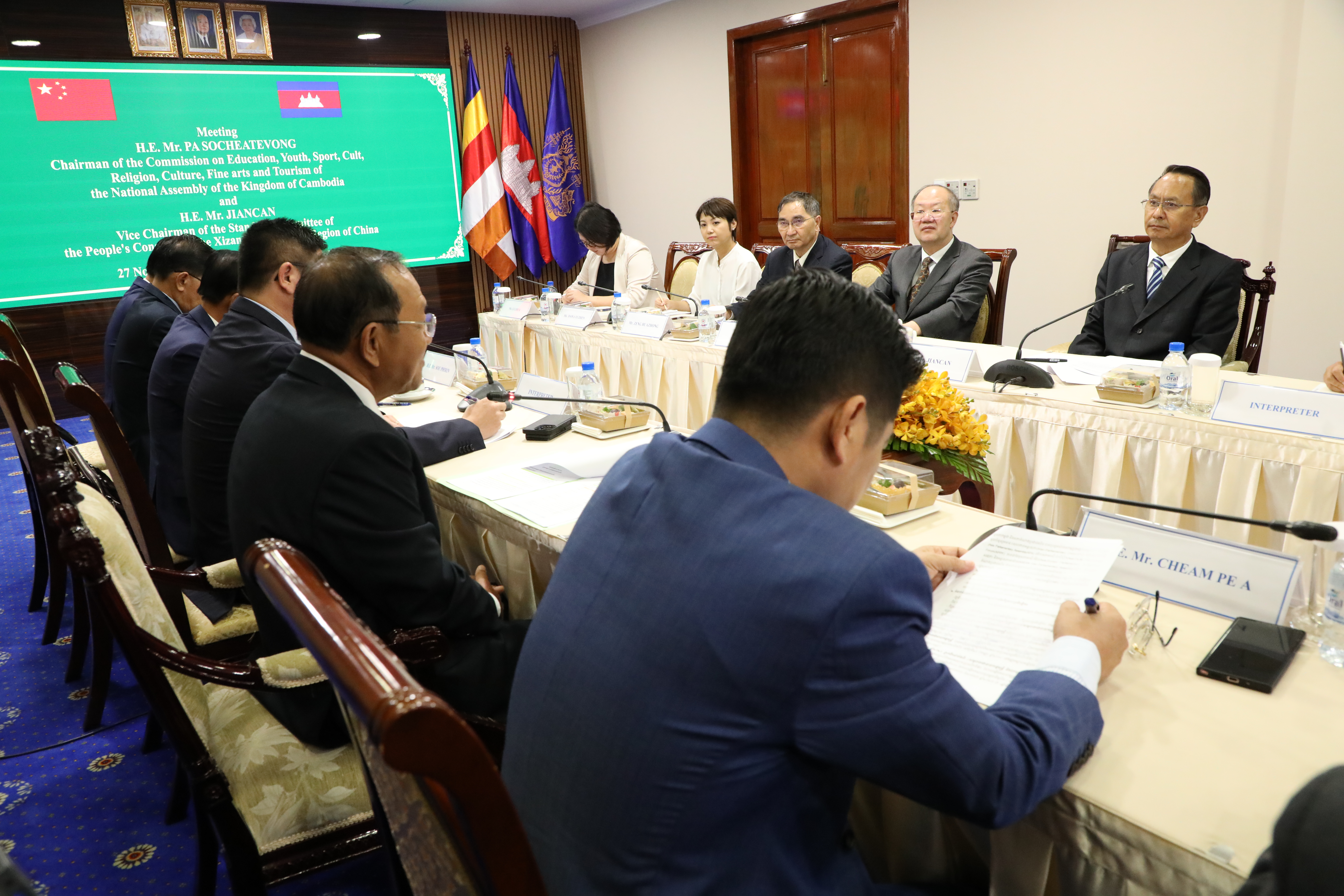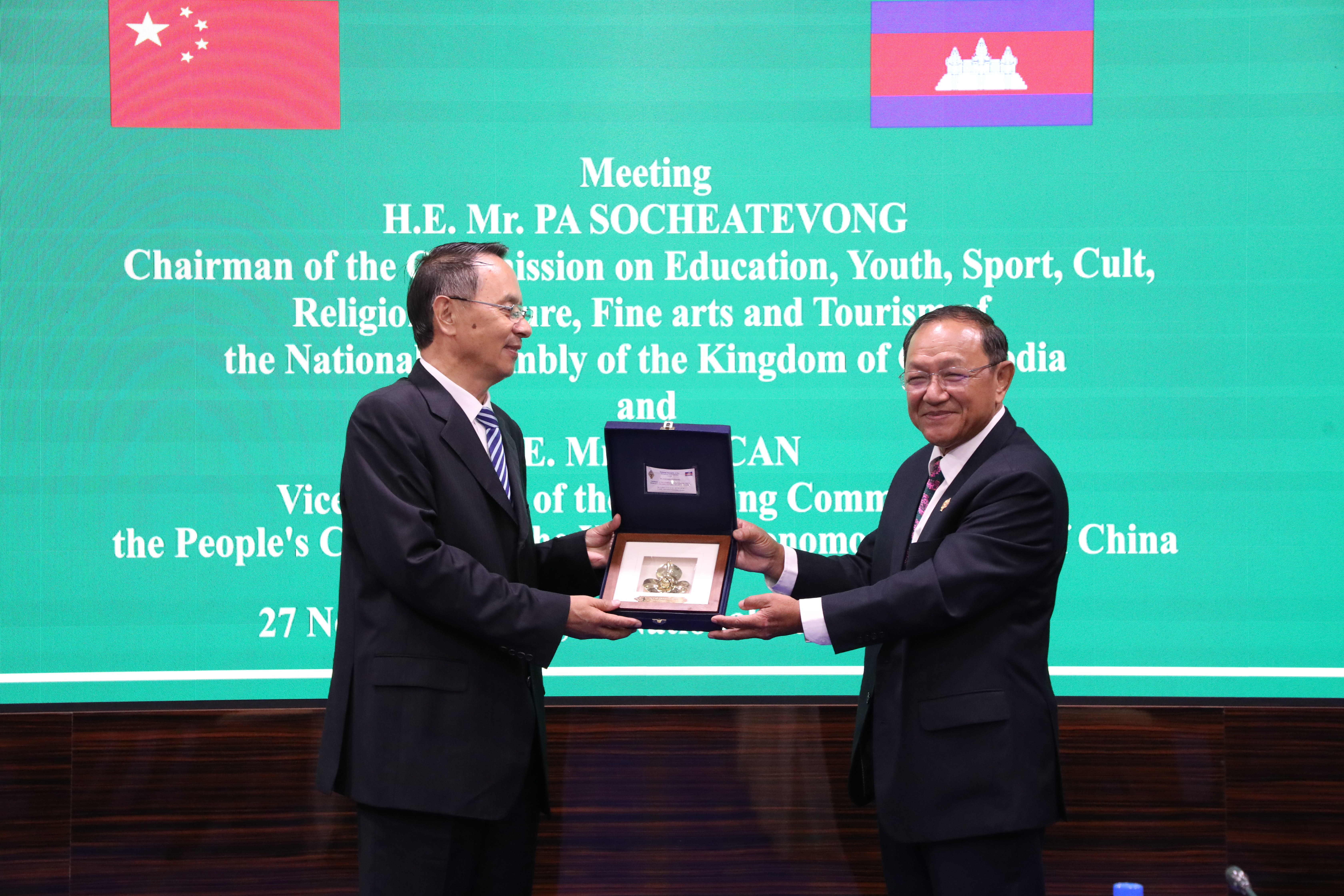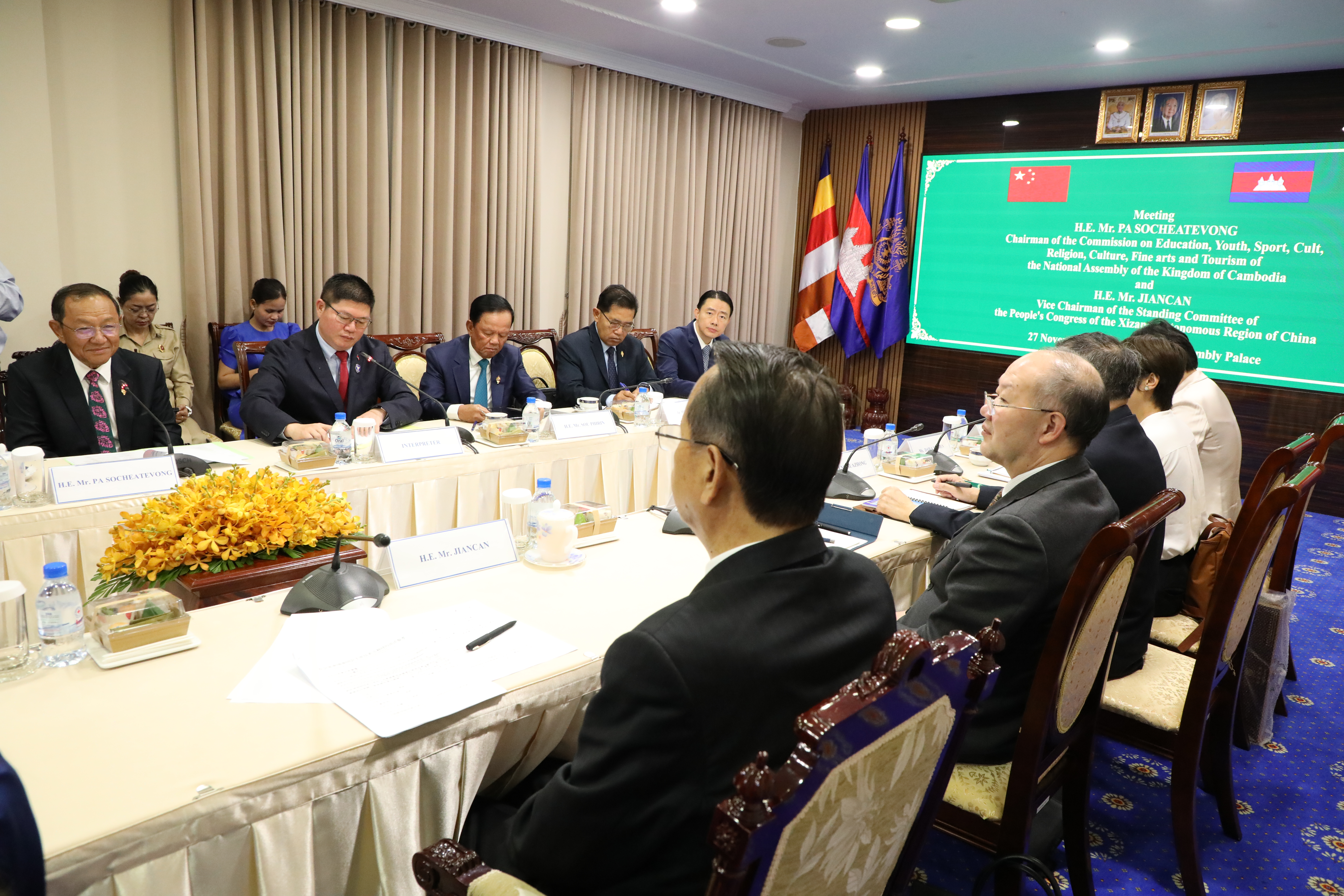 ឯកឧត្តម ប៉ា សុជាតិវង្ស ប្រធានគណៈកម្មការអប់រំ យុវជន កីឡា ធម្មការសាសនា វប្បធម៌ វិចិត្រសិល្បៈ និងទេសចរណ៍ (គណៈកម្មការទី៧)នៃរដ្ឋសភា បានជួបពិភាក្សាការងារជាមួយ ឯកឧត្តម ជៀន ឆាន (JIANCAN) អនុប្រធានគណៈកម្មាធិការអចិន្ត្រៃយ៍ នៃសភាតំណាងប្រជាជនចិនតំបន់ស្វយ័តស៊ីចាង (Xizang) នៃសាធារណរដ្ឋប្រជាមានិតចិន នាព្រឹកថ្ងៃទី២៧ ខែវិច្ឆិកា ឆ្នាំ២០២៥ នៅវិមានរដ្ឋសភា។