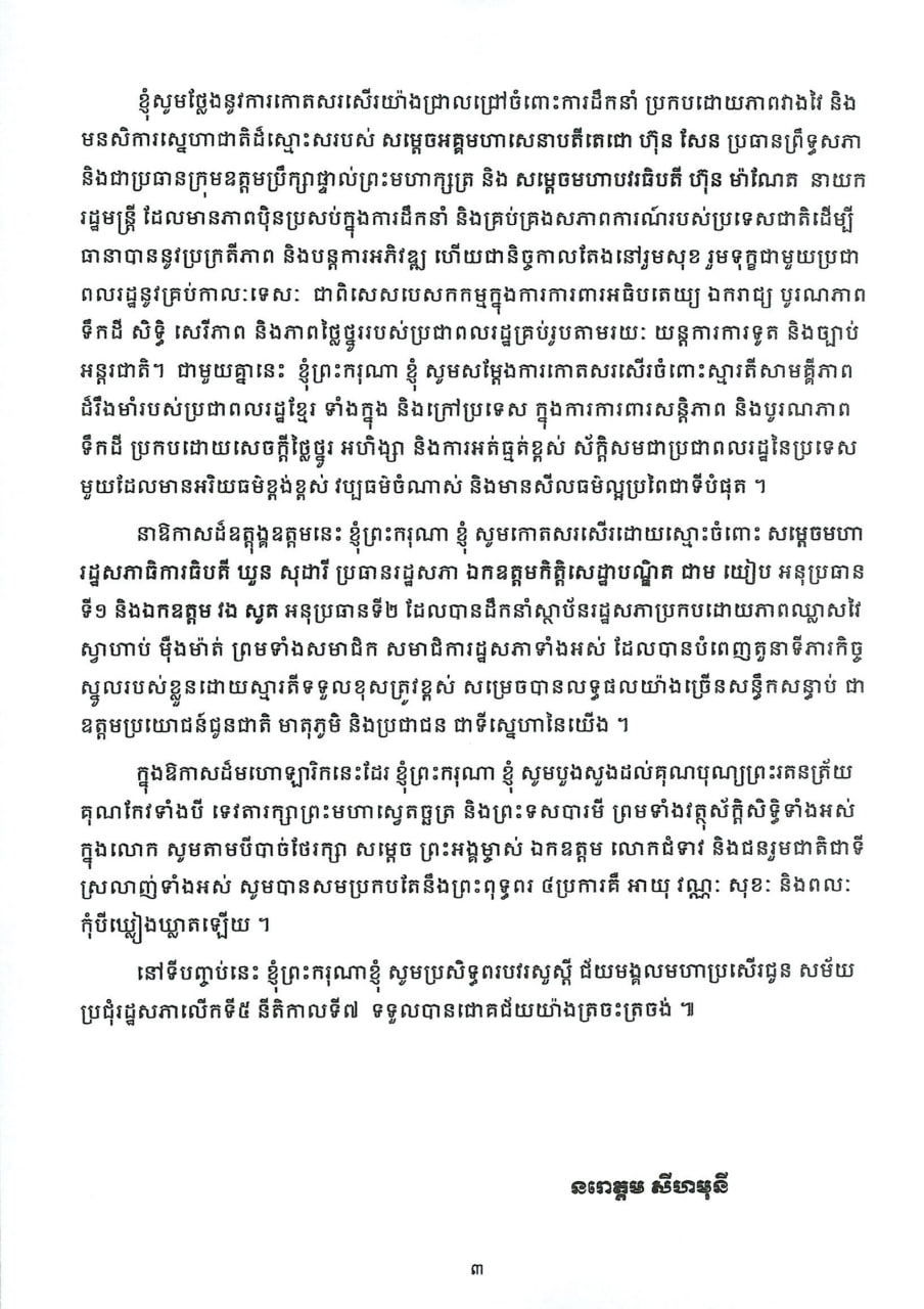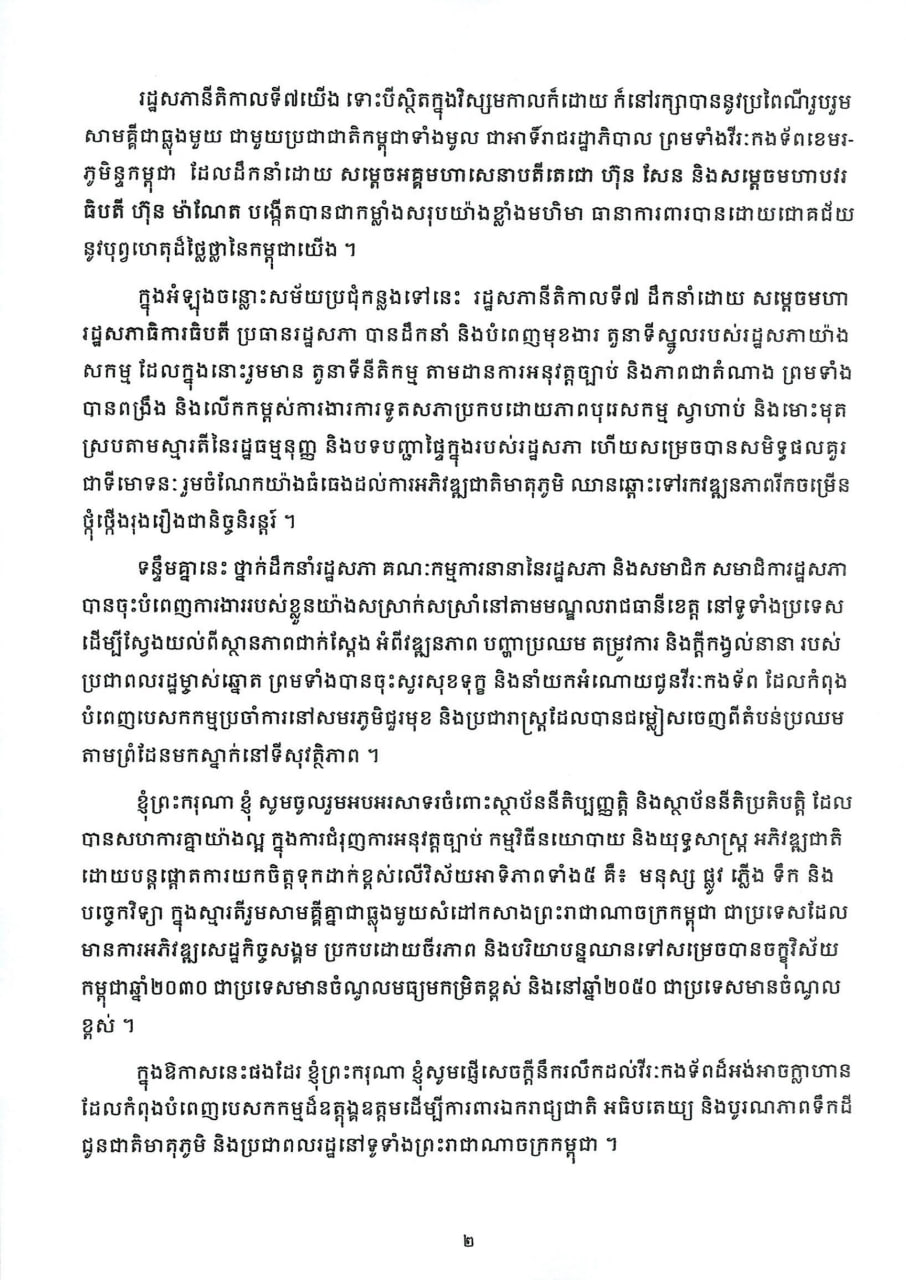 ព្រះរាជសារ ព្រះករុណាព្រះបាទសម្តេចព្រះបរមនាថ នរោត្តម សីហមុនី ព្រះមហាក្សត្រនៃព្រះរាជាណាចក្រកម្ពុជា ក្នុងឱកាសបើកបវេសនកាលនៃរដ្ឋសភា សម័យប្រជុំរដ្ឋសភា លើកទី៥ នីតិកាលទី៧ នៅថ្ងៃទី២៨ ខែវិច្ឆិកា ឆ្នាំ២០២៥