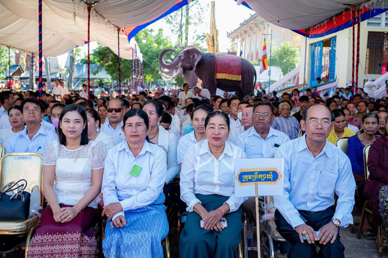 ឯកឧត្តម ជា វ៉ាន់ដេត ប្រធានក្រុមការងាររាជរដ្ឋាភិបាលចុះមូលដ្ឋានខេត្តតាកែវ បានអញ្ជើញជាអធិបតីក្នុងពិធីសម្ពោធឆ្លងសមិទ្ធផល និងមានការនិមន្តចូលរួមពីសម្តេចព្រះពុទ្ធជ័យមុន្នីបណ្ឌិត ឃឹម សន សម្តេចព្រះសង្ឃនាយករងទី៣ គណៈមហានិកាយ នៃព្រះរាជាណាចក្រកម្ពុជា ព្រះគ្រូមេគណខេត្តតាកែវ សមាជិកព្រឹទ្ធសភា ថ្នាក់ដឹកនាំខេត្ត និងអាជ្ញាធរពាក់ព័ន្ធគ្រប់លំដាប់ថ្នាក់ លោកគ្រូ អ្នកគ្រូ សិស្សានុសិស្ស ព្រមទាំងប្រជាពលរដ្ឋសរុបប្រមាណ ២,១៤០អង្គ/នាក់។