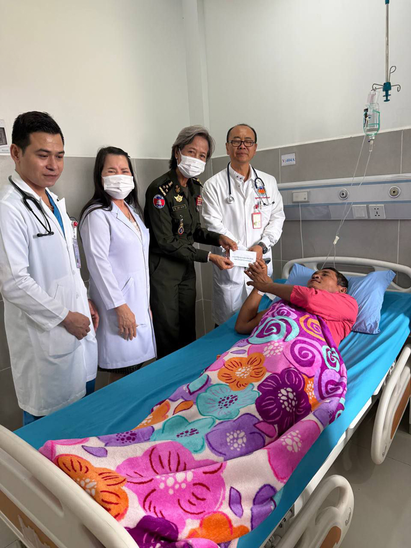 សម្តេចកិត្តិសង្គហបណ្ឌិត ម៉ែន សំអន ឧត្តមប្រឹក្សាផ្ទាល់ព្រះមហាក្សត្រ និងជាប្រធានក្រុមប្រឹក្សាជាតិរណសិរ្សសាមគ្គី អភិវឌ្ឍន៍មាតុភូមិកម្ពុជា នៅព្រឹកថ្ងៃទី១១ ខែធ្នូ ឆ្នាំ២០២៥ បានអញ្ជើញសួរសុខទុក្ខវីរៈកងទ័ពចំនួន ០៣រូប ដែលបានរងរបួសកាលពីថ្ងៃទី៨ ខែធ្នូ ឆ្នាំ២០២៥ ក្នុងការតស៊ូប្រយុទ្ធយ៉ាងស្វិតស្វាញការការពារបូរណភាពទឹកដឹកដីតាមបណ្តោយព្រំដែនកម្ពុជា-ថៃ ដែលបច្ចុប្បន្នកំពុងសម្រាកព្យាបាលនៅមន្ទីរពេទ្យព្រះកេតុមាលា និងមន្ទីរពេទ្យព្រះអង្គឌួង។
