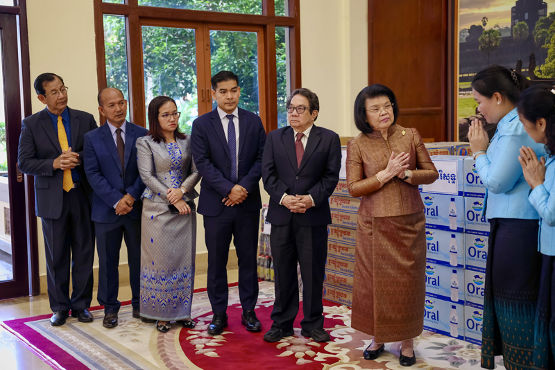 សម្តេចមហារដ្ឋសភាធិការធិបតី ឃួន សុដារី ប្រធានរដ្ឋសភា នៅព្រឹកថ្ងៃព្រហស្បតិ៍ទី២៥ ខែធ្នូ ឆ្នាំ២០២៥ បានទទួលអំណោយសប្បុរសធម៌ទឹកប្រាក់ចំនួន ៤លានរៀល និងសម្ភារៈមួយចំនួនទៀតមាន អង្ករ៥០០គីឡូក្រាម ពងទា១ពាន់គ្រាប់ ឆៃប៉ូវ ១០០គីឡូក្រាម ទឹកត្រី២០យួរ ទឹកស៊ីអ៊ីវ២០យួរ ទឹកបរិសុទ្ធ៥០កេស មី៥០កេស ពីក្រុមចលនាស្រ្តីគណបក្សប្រជាជនកម្ពុជាខេត្តកណ្តាល ដឹកនាំដោយលោកជំទាវ ស្រ៊ុន ស្រីនាង ប្រធានក្រុមចលនាស្រ្តីគណបក្សប្រជាជនកម្ពុជាខេត្តកណ្តាល ដើម្បីធ្វើការបែងចែកជូនវីរយុទ្ធជននិងពលរដ្ឋភៀសសឹក ក្នុងគ្រាលំបាកដែលកម្ពុជាកំពុងប្រឈមនឹងការឈ្លានពានយ៉ាងឃោរឃៅរបស់ប្រទេសថៃមកលើអធិបតេយ្យកម្ពុជា។