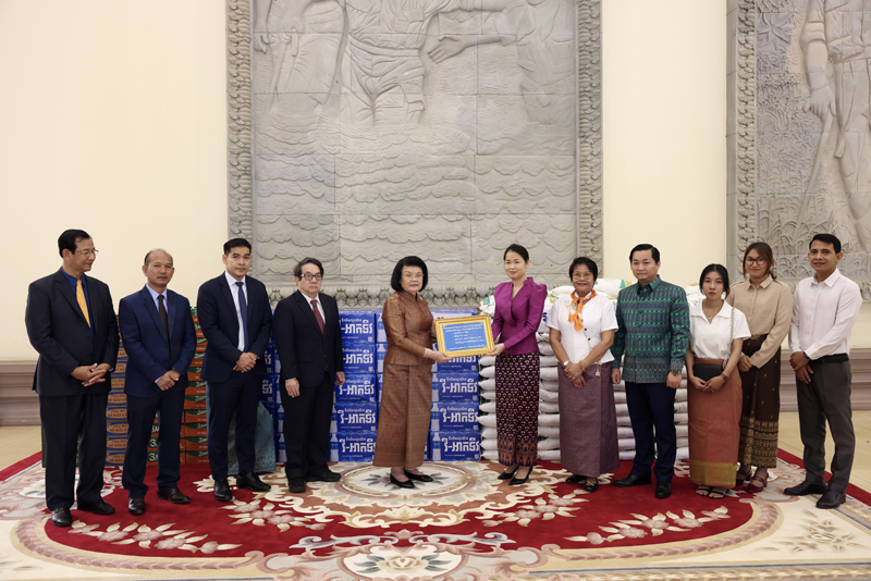 សម្តេចមហារដ្ឋសភាធិការធិបតី ឃួន សុដារី ប្រធានរដ្ឋសភា នៅព្រឹកថ្ងៃព្រហស្បតិ៍ទី២៥ ខែធ្នូ ឆ្នាំ២០២៥ បានទទួលអំណោយសប្បុរសធម៌មានដូចជាអង្ករ ចំនួន២តោនមី ចំនួន ៥០កេស នំទាហាន ចំនួន ១០កេស និងទឹកបរិសុទ្ធ វីអាកទីវ ចំនួន ៥០កេស ពី ក្រុមហ៊ុន អិន & ភី អ៊ីន វេសមិន ខូអិលធីឌី ដឹកនាំដោយលោកស្រី អ៊ា ប៉ហ៊ាប សម្រាប់ចូលរួមចំណែកក្នុងការគាំទ្រនិងលើកទឹកចិត្តដល់វីរៈកងទ័ពជួរមុខ ដែលកំពុងបំពេញបេសកកម្ម ដ៏ឧត្តុង្គឧត្តមការពារបូរណភាពទឹកដី និងអធិបតេយ្យជាតិ ព្រមទាំងការឧបត្ថម្ភដល់ជនភៀសសឹក។