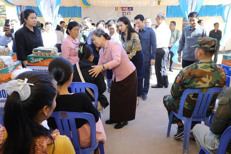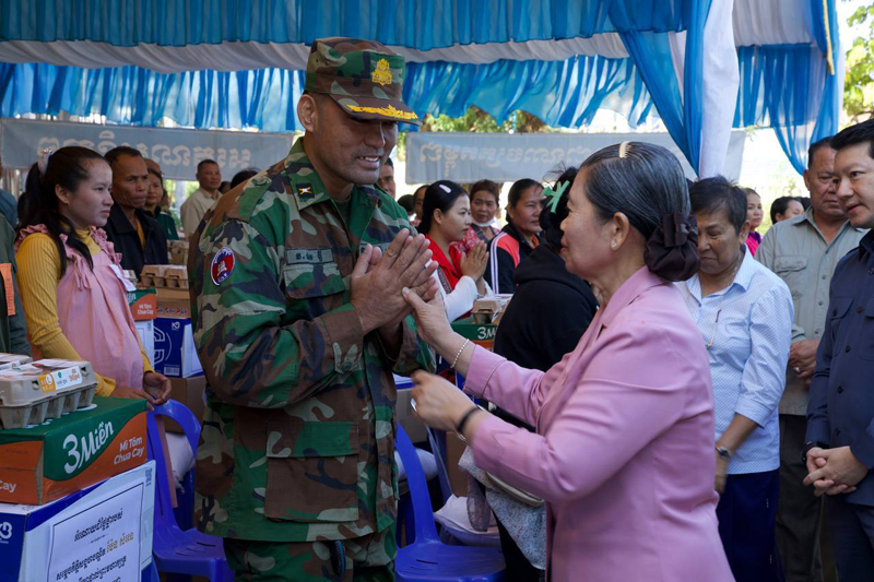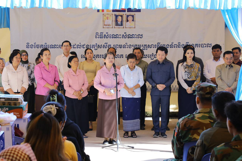អំណោយសម្រាប់ជនភៀសសឹកព្រមទាំងក្រុមគ្រួសារវីរកងទ័ព និងវីរនគរបាល មានចំនួន ៤៦៧គ្រួសារ ក្នុងមួយគ្រួសារទទួលបាន៖ អង្ករ ២៥គីឡូក្រាម ទឹកសុទ្ធ១កេស មី១កេស ពងមាន់២០គ្រាប់ ឃីតមួយកញ្ចប់ ក្នុងនោះមាន៖ មុង ១ ក្រម៉ា ១ សារ៉ុង ១ សាប៊ូកក់សក់ ១ដប ច្រាសដុសធ្មេញ ៥ដើម ថ្នាំដុសធ្មេញ ១ដើម សាប៊ូដុសខ្លួន ១ដុំ សាប៊ូបោកខោអាវ ១កញ្ចប់ និងថវិកាមួយចំនួន៕