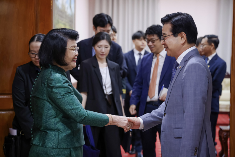 សម្តេចប្រធានរដ្ឋសភាបានស្នើឯកអគ្គរដ្ឋទូតកូរ៉េ បន្តជំរុញអ្នកវិនិយោគ អ្នកទេសចរពីសាធារណកូរ៉េមកកម្ពុជាបន្ថែមទៀត។ “អរិយធម៌បុរាណនៃប្រទេសយើងទាំងពីរបាន គូសបញ្ជាក់ពីសក្តានុពលសម្រាប់កិច្ចសហប្រតិបត្តិការ ឱ្យកាន់តែស៊ីជម្រៅតាមរយៈការផ្លាស់ប្តូរវប្បធម៌ អប់រំ និងទេសចរណ៍ រវាងប្រទេសយើងទាំងពីរ”។ ជាមួយគ្នានេះសម្តេចក៏បានស្នើដល់សាធារណរដ្ឋកូរ៉េជួយផ្តល់ការបណ្តុះបណ្តាលជំនាញបច្ចេកវិទ្យា ដល់មន្រ្តីអគ្គលេខាធិការដ្ឋានរដ្ឋសភា ដើម្បីផ្តល់សេវាកាន់តែប្រសើរ ជូនតំណាងរាស្រ្តក្នុងការបម្រើប្រជាពលរដ្ឋផងដែរ។ សម្តេចប្រធានរដ្ឋសភា បានគូសបញ្ជាក់ថា រាជរដ្ឋាភិបាលអាណត្តិទី៧ ដឹកនាំដោយ សម្តេចបវរធិបតី ហ៊ុន ម៉ាណែត បានកំណត់ច្បាស់នៅក្នុងយុទ្ធសាស្រ្តបបញ្ចកោណ ដំណាក់កាលទី១ ដោយ បានកំណត់យកកត្តា “មនុស្ស” ជាកត្តាទី១ និងចម្បងបំផុត ក្នុងការកែទម្រង់និងអភិបាលកិច្ច។ សម្តេចមានសង្ឃឹមថា សាធារណរដ្ឋកូរ៉េនឹងបន្តផ្តល់អាហារូបករណ៍ជំនាញសំខាន់ៗជាច្រើនទៀតដល់សិស្សនិស្សិតកម្ពុជាបន្ថែមទៀត។