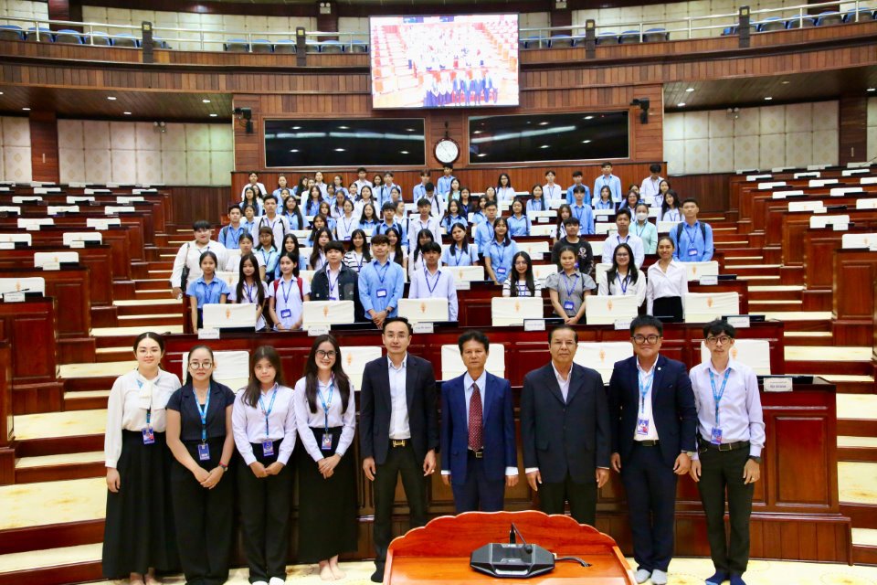 វិមានរដ្ឋសភា៖ ដើម្បីពង្រីកចំណេះដឹងទូទៅ និងបណ្ដុះស្មារតីស្រឡាញ់ស្ថាប័នជាតិដល់យុវជនជំនាន់ក្រោយ ប្រតិភូលោកគ្រូ អ្នកគ្រូ និងសិស្ស-និស្សិតប្រមាណ ១០០ រូប នៃសាលាភាសាបរទេស ខេម- អាស៊ាន (Cam-ASEAN) នារសៀលថ្ងៃទី២៦ ខែកុម្ភៈ ឆ្នាំ២០២៦នេះ បានអញ្ជើញមកធ្វើទស្សនកិច្ចសិក្សាឈ្វេងយល់យ៉ាងស៊ីជម្រៅអំពីតួនាទី និងភារកិច្ចរបស់រដ្ឋសភា ដែលជាស្ថាប័ននីតិប្បញ្ញត្តិកំពូលរបស់ជាតិ។
