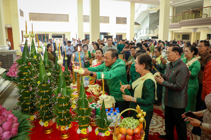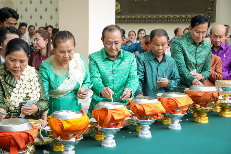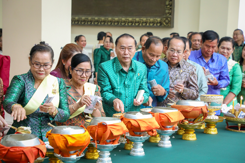 (វិមានរដ្ឋសភា)៖ នាព្រឹកថ្ងៃព្រហស្បតិ៍ ៧រោច ខែចេត្រ ឆ្នាំម្សាញ់ សប្តស័ក ព.ស.២៥៦៩ ត្រូវនឹងថ្ងៃទី៩ ខែមេសា ឆ្នាំ២០២៦ រដ្ឋសភានៃព្រះរាជាណាចក្រកម្ពុជា បានរៀបចំពិធីក្រុងពាលី និងសូត្រមន្តចម្រើនព្រះបរិត្ត ដើម្បីបួងសួងសុំសេចក្តីសុខសិរីសួស្តី ក្នុងឱកាសត្រៀមអបអរសាទរពិធីបុណ្យចូលឆ្នាំថ្មីប្រពៃណីជាតិខ្មែរ ដែលនឹងឈានចូលមកដល់នាពេលដ៏ខ្លីខាងមុខ។