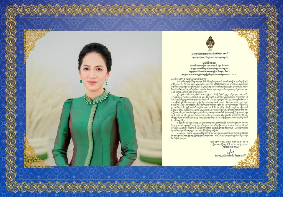 សម្តេចមហារដ្ឋសភាធិការធិបតី ឃួន សុដារី ប្រធានរដ្ឋសភា ព្រមទាំងថ្នាក់ដឹកនាំរដ្ឋសភា នៃព្រះរាជាណាចក្រកម្ពុជា ផ្ញេីសារលិខិតជូនពរ លោកជំទាវបណ្ឌិត ពេជ ចន្ទមុន្នី ហ៊ុនម៉ាណែត អនុប្រធានអចិន្ត្រៃយ៍កាកបាទក្រហមកម្ពុជា អគ្គស្នងការនៃសមាគមកាយឫទ្ធិនារីកម្ពុជា និងជាអនុប្រធានសមាគមគ្រូពេទ្យស្ម័គ្រចិត្តយុវជនសម្តេចតេជោ (TYDA)
