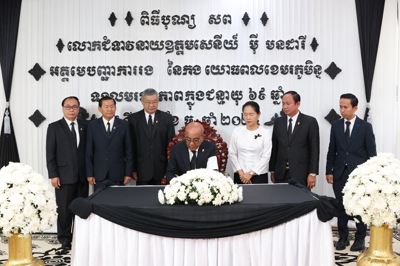 គណ:ប្រតិភូគណៈកម្មការមហាផ្ទៃ ការពារជាតិ មុខងារសាធារណ: និងកិច្ចការព្រំដែន នៃរដ្ឋសភា (គណ:កម្មការទី៤) ដឹកនាំដោយឯកឧត្តម កែប ជុតិមា ប្រធានគណៈកម្មការ តំណាងដ៏ខ្ពង់ខ្ពស់សម្តេច មហារដ្ឋសភាធិការធិបតី ឃួន សុដារី ប្រធានរដ្ឋសភានៃព្រះរាជាណាចក្រកម្ពុជា បានអញ្ជើញដាក់ កូរោនផ្កាគោរពវិញ្ញាណក្ខន្ធសព លោកជំទាវនាយឧត្តមសេនីយ៍ ម៉ី មនដារី អគ្គមេបញ្ជាការរងនៃ ...